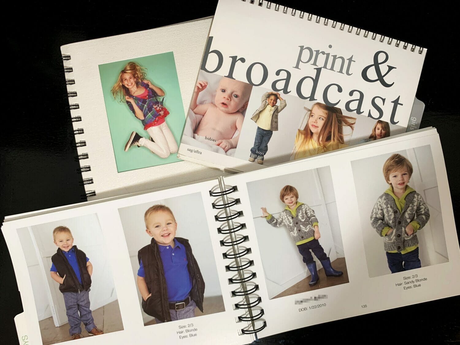 Several modeling agencies in Dallas produce a printed marketing piece called a Head Book each year. This book showcases a headshot and a full-length shot of all the children they represent. Next to each child’s photos, they list relevant information, including the child’s name, height (in inches), clothing and shoe sizes, hair color, and eye color. The Head Book is a quick and convenient reference for clients looking to hire the right child model.